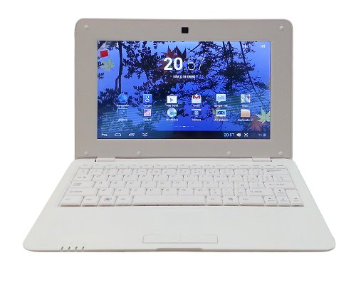 Portátil Android de 10,1". Resolución 1024x 600, Procesador Cortex A9 1,5Ghz WM8880, RAM 1Gb, 8Gb Compatible con MicroSD hasta 32Gb, Wifi, HDMI, Teclado 82 teclas con TouchPad, Lector de tarjetas, USB x2, Auriculares y Micro, LAN 10/100M RJ45. Android 4.0, Color blanco.