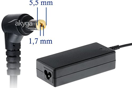 Power Adapter AK-ND-06 19V/3.42A 65W 5.5*1.7 mm Especificación Descripción Adaptador de corriente para portátil Akyga AK - ND- 06 con una potencia de 65 W está dedicada a los portátiles Acer. Adaptador de corriente es compatible con todos los modelos de 19V / 3.42A DC alimentados con conector de 5,5 * 1,7 mm . Conjunto de Seguridad integrado por OVP , OTP , OPP , SCP oraz OCP con arranque suave garantiza un funcionamiento seguro y estable del adaptador de corriente y dispositivos alimentados . Product code AK-ND-06 Type of the power supply Notebook Power Supply - Dedicated series Type of the product AC Adapter Input voltage 100-240V / 50/60Hz Output Voltage 19V / 3.42A USB connector No Display No Maximum DC output 65 W Efficiency >80% Over Voltage Protection (OVP) Yes Over Current Protection (OCP) Yes Over Power Protection (OPP) Yes Over Temperature Protection (OTP) Yes Short Circuit Protection (SCP) Yes Soft start Yes Power inlet type IEC C6 ('cloverleaf') Power cord included No Outlet cord length 1.2 m Outlet cord connector 5.5x1.7 mm Box Brown box Product dimensions (length * width * height) 125 x 49 x 29 mm Box dimensions (length * width * height) 190 x 90 x 38 mm Weight Netto 200 g Gross Weight 249 g Certification CE, FCC, RoHS EAN Code 5901720130259