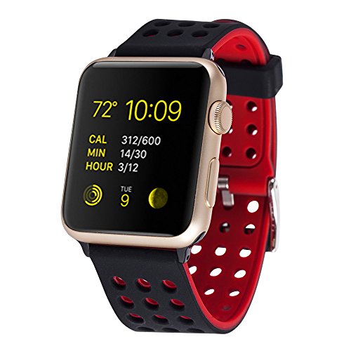 Huishang Apple Watch Series 1 / 2 Armband, Silikon Deodorant und Sweat Proof Sportarmband Uhrenarmband Erstatzband für Apple Watch Sportuhr (42mm, Black/Red) [CE]