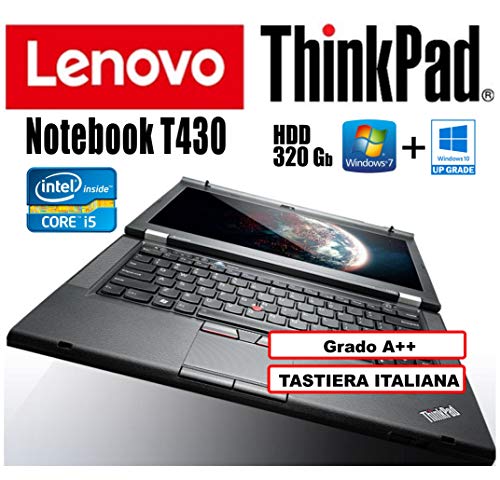 Notebook Lenovo ThinkPad T430 - Core i5, 4Gb RAM, 320Gb HDD, USB 3.0, 14"HD+ 1600x900, Windows 7 Pro + Windows 10 Pro UpGrade (Ricondizionato Certificato) [Personal Computer]
