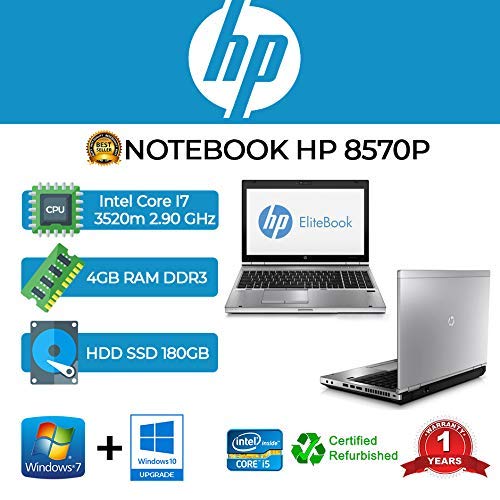 HP ELITEBOOK 8570P Core I7-3520M/4GB/SSD 180GB/DVD/15.6"/Web/Win 10 Pro (Reacondicionado) [Ordenador personal]