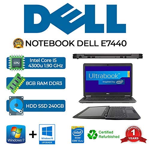 Ordenador portátil Dell E7440 Core I5 4300U/8GB/SSD 240GB/WEB/WIN 10 Pro (reacondicionado) [Ordenador personal]